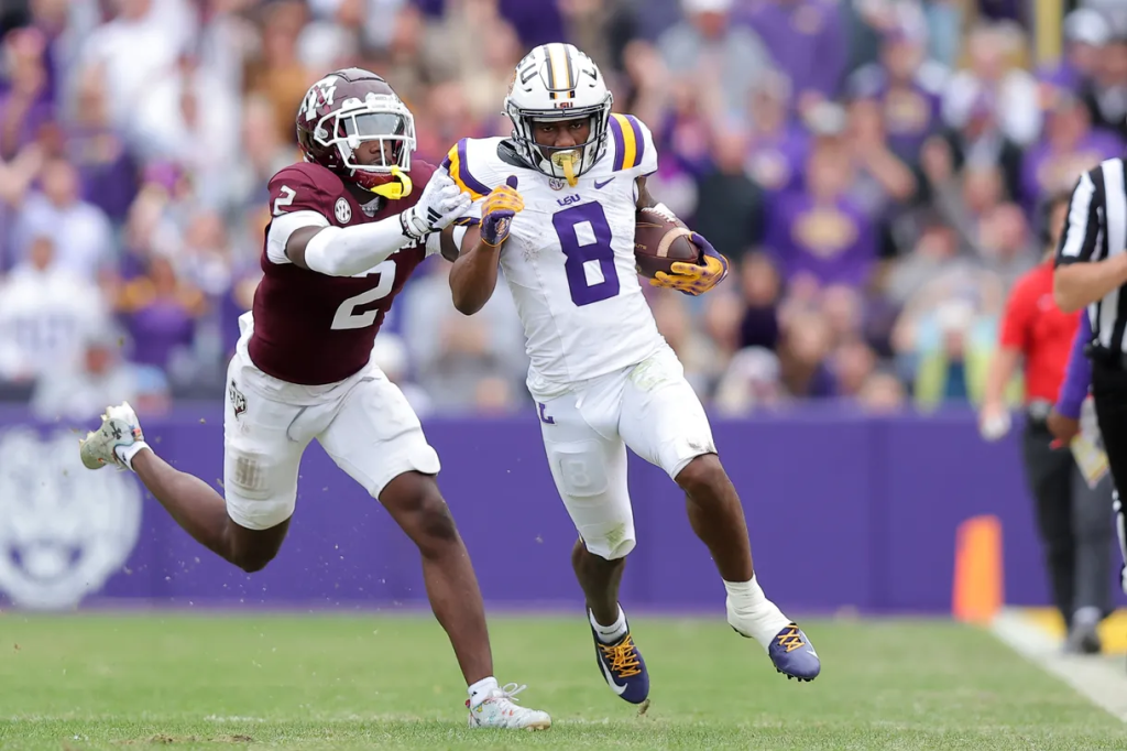 The 3 year man out of LSU had an amazing senior year to close out his college career. Averaging over 120 yards per game, he tore apart defenses thanks to his blazing speed. In back to back years he led the SEC in receptions with 72 in 2022 and 89 in 2023.
